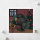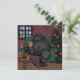 Lindo cartão desenhado à mão e colorido "Todo de peru" de Ação de Graças com um cachorro preto da Terra Nova, depois de uma grande refeição de peru de Ação de Graças. Tirando um grande cochilo de peru pronto para a sobremesa!
