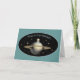 Nós demos ao planeta Saturno um caule curto e uma tampa como um enfeite clássico de árvore de Natal. A frente do cartão diz "Toque as festas de fim de ano..." em um campo oval de estrelas com o enfeite de Saturno no centro.