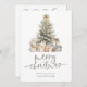 Tree Company logo 2026 Calendar Merry Christmas. Available digitally and printed. For your corporate festive greetings, Merry Christmas is in an elegant set script in black. With a Christmas tree and gifts illustration and a handy 2026 calendar on the back.