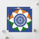 Esta design mostra a essência da bandeira indiana com um toque moderno. A central Ashoka Chakra, desenhada com linhas limpas, destaca-se contra o fundo tricolor. A simplicidade da design permite aplicações versáteis, desde convites digitais a banners ou t-shirts para comemorações do Dia da Independência.