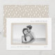 Sutil e elegante, nosso cartão de Natal chique emoldura sua foto favorita com pinceladas de aquarela em um tom neutro grege, com "Feliz Natal" no topo em letras delicadas e itálicas. Personalize com o(s) nome(s) da sua família e o ano na parte inferior. Um padrão de fundo de pequenas árvores de pinheiro em branco sobre cores correspondentes adiciona um apelo festivo.