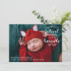 Este anúncio de nascimento para o feriado minimalista apresenta uma foto que ocupa toda a frente do cartão e uma foto que ocupa toda a parte traseira do cartão. A tipografia é moderna com um toque de capricho!