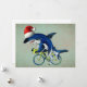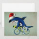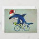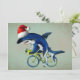 Cartão De Festividades Tubarão andando de bicicleta com chapéu de Papai N