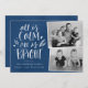 Enviar cartões de natal na moda para amigos e família com o nosso cartão com fotos de feriado "Tudo está Calmo". O cartão exibe a frase "All is Calm, All is Bright" em letras brancas, com um fundo azul-escuro de aquarela. Personalize a frente do cartão adicionando duas fotos e seus nomes.