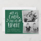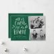 Enviar cartões de natal na moda para amigos e família com o nosso cartão com fotos de feriado "Tudo está Calmo". O cartão exibe a frase "All is Calm, All is Bright" em letras brancas, com um fundo de aquarela verde. Personalize a frente do cartão adicionando duas fotos e seus nomes.
