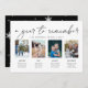 O design único de cartão de feriado moderno apresenta quatro fotos favoritas com legendas personalizadas, com seu nome de família e "Um ano para lembrar" acima. Crie um cartão de estilo anual em revisão para familiares e amigos compartilhando fotos dos momentos especiais de sua família e descrevendo-as com nossos modelos de texto personalizados. As letras negras negras nítidas com acentos escritos à mão dão a este Cartões de foto de Natal um sentimento moderno minimalista.