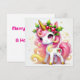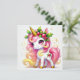 Cartão De Festividades Unicórnio Brilho Dourado com Coroa de Azevinho