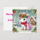 Este cartão de Natal encantador apresenta um unicórnio ao lado de uma aconchegante casa de inverno adornada com decorações festivas. Uma escolha caprichosa e emocionante para saudações de Natal!