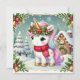 Cartão De Festividades Unicórnio em uma Casa de Inverno Festiva