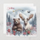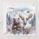 Cartão De Festividades Urso, alce e natureza linda no Natal