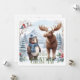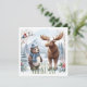 (Texto personalizável) Urso, cervo e pássaros na natureza linda, cartão de Natal de Feliz Natal.
