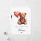 Celebre o primeiro Dia dos Namorados de uma mãe com este cartão de lembrança bonito e emocionante. O design apresenta um urso de pelúcia marrom macio realista adornado com um laço rosa em estilo de cetim, segurando um balão vermelho vibrante em forma de coração. É uma maneira doce e emocional de uma criança (ou parceiro em nome da criança) homenagear uma nova mãe neste marco especial. Com seu fundo branco limpo e tipografia sofisticada, este cartão equilibra perfeitamente o charme fofo com a elegância atemporal.