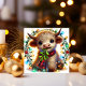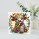 Cartão De Festividades Vaca das Terras Altas com visco e luzes de Natal