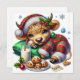 Traga calor para a estação com esta acolhedora carta de férias plana com uma vaca Highland vestida de pijama festivo, rodeada de biscoitos e leite para Papais noeis. Um design doce e encantador para todas as idades.