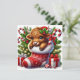 Cartão De Festividades Vaca Highland Adorável em Meia de Natal