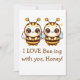 Esta é uma piada de abelha fofa, as palavras dizem "Eu amo estar com você, Mel!" Perfeito para quem você ama neste Dia dos Namorados. É uma piada engraçada com abelhas fofas e peludas na frente. A parte de trás diz "Feliz Dia dos Namorados" com espaço para uma nota sua, se desejar. Pode ser usada como cartão de sala de aula ou cartão escolar para crianças.