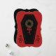 Para o seu decoro de feriado gótico, este vampiro temido design tem um caixão com uma coroa de Natal festiva nele. Esquema de cor preto e vermelho, folhas holly.