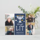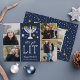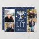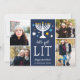 Hora de acender...a menorah, é isso! Engraçado cartão com fotos Hanukkah apresenta "vamos acende-se" debaixo de uma ilustração menorah destacada com estrelas azuis e brancas. Adicione quatro de suas fotos favoritas em um layout de colagem, juntamente com seus nomes e uma saudação personalizada de Chanucá. Personalize a parte de trás com uma foto adicional, se desejar.