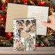 Quatro fotos em um padrão de grade único na frente desses cartões de Natal dobrados apresentam a saudação Feliz Natal e Feliz ano novo em letras de música com uma borda dourada. Sua saudação pessoal e seus nomes estão impressos no dentro. Mais cores na nossa coleção.