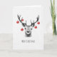 Veado com bolas de Natal desenhando cartão de saudação de Natal.