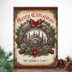 Prepare-se para as festas de fim de ano com um estilo industrial elegante com este cartão de Natal Steampunk. O design combina elementos festivos tradicionais e nostalgia com engrenagens e mecanismos intrincados da era industrial vitoriana. A clássica coroa de sempre-viva é decorada com pinhas, fita vermelha e flor de poinsétia - além de uma camada de maquinaria metálica. No centro da coroa há mais maquinaria em estilo vintage, encimada por velas góticas antigas. Um cartão ideal para o entusiasta de Steampunk.
