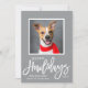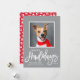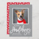 Mostre seu membro furioso da família com esses cartões de Natal modernos "Feliz Feliz Feliz Feliz" que apresentam seu novo cachorro, a formulação personalizada de "Paz, Amor e Tratamentos" e os sotaques de design de impressão de pata. Preto vermelho, cinza e esquema de cor branca.
