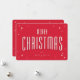 Um cartão de Natal simples, ousado e sem complicações, sem foto. Perfeito para uso pessoal ou corporativo. Apresenta uma saudação de Natal em uma fonte retrô rodeada por estrelas estilizadas e detalhes personalizados editáveis abaixo. Há espaço no verso para uma mensagem impressa mais longa - exclua antes de encomendar, se não necessário. Também disponível em outras cores, com uma fotografia no verso, como um design de prensa de folha metálica e como cartões dobrados.