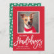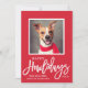 Mostre seu membro peludo da família com estes cartões de Natal "Feliz Feliz Natal" que apresentam seu cachorro-cachorrinho, o texto personalizado "Paz, Amor e Tratamentos" e os sotaques de design de impressão de pata. Crimson vermelho, verde escuro e esquema de cores brancas.
