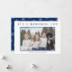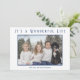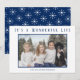 Envie alegria natalina com estes cartões de Natal minimalistas. Um design moderno e simples com a foto da sua família e a mensagem "É uma Vida Maravilhosa" em azul marinho sobre um fundo branco. O verso tem flocos de neve brancos sobre um fundo azul marinho. Você pode alterar a cor dos fundos clicando no botão "personalizar".