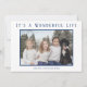 Envie alegria natalina com estes cartões de Natal minimalistas. Um design moderno e simples com a foto da sua família e a mensagem "É uma Vida Maravilhosa" em azul-marinho sobre um fundo branco. O verso tem flocos de neve brancos sobre um fundo azul-marinho. Você pode alterar a cor dos fundos clicando no botão "personalizar".