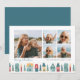 Um design doce e festivo cartão de feriado com 5 fotos quadradas em uma colagem, com uma ilustração da borda inferior das casas desenhadas à mão e das árvores em cores de férias. "Feliz Natal" ou sua escolha de saudação aparece debaixo de suas fotos, junto com seu nome de família e o ano.