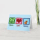 Um legal cartão de Natal guitarrista, com um cartaz de paz, coração e uma guitarra sobre um belo fundo azul. Um cartão de feriado de loja de instrumentos musicais que lê o Violão do Amor pela Paz.