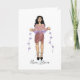 Cartão de saudação com mulher segurando uma sequência de corações roxos que dizem "você é amado". Ilustração feminina de moda para o Dia dos Namorados em fevereiro. Cartão de design fofo e feminino para filhas, amigas ou netas. Adicione um nome e uma mensagem pessoal dentro.