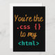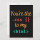 Este Pun de Programação com a citação VOCÊ É O CSS PARA MY HTML - WEB DEV Dia de os namorados Holiday Card é o presente perfeito para todos os Geeks de Programação, programadores noob, desenvolvedores de jogos, Programadores, Desenvolvedores da Web, Devs, Desenvolvedores de jogos e outros que adoram Codificação e programação.