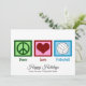 Um sinal de paz, coração e uma linda bola de vôlei em um cartão de férias fofo. Eu amo vôlei, praia, quadra, você escolhe! Lindos cartões de Natal para o time de vôlei para as festas de fim de ano com seus companheiros de equipe ou treinador.