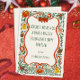 Hand drawn holiday card featuring Christmas ornaments with warm wishes in red and green on cream background