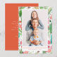 O design é composto por uma aquarela de botânicos de folhagem de Natal. Adicione uma foto personalizada e um nome de família e ano.