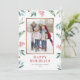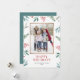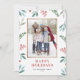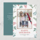 Cartão de Feriados Felizes com Foto de Moldura de Aquarelas | Envie cartões de natal para a família e amigos com esta placa plana de feriado de cor d'água personalizável. Apresenta ilustrações de aquarelas de verde festivo e colas. Todos os textos são perfeitamente personalizáveis. Personalize adicionando sua foto e detalhes.