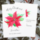 Feliz cartão de Natal. Flor de poinsettia aquosa, cartão tradicional. Por favor, personalize-o com os seus detalhes.
