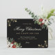 Elegant black and gold holiday card showcasing watercolor winter botanicals.