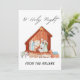 Uma bela cena de serenidade O' Santa Noite em Bethlehem imagem de aquarela de Natal que pode ser personalizada com seu nome de família e cartões de natal. Celebre o motivo da temporada, Jesus bebê em um cartão de Natal não fotográfico religioso. Apresentando um roteiro preto com tipografia manuscrita. #natividade