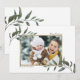 Watercolor Winter Greenery Christmas Holiday Cartão com fotos com galhos elegantes e uma folha de papel dourado falso em torno da sua própria foto. Fácil de personalizar o texto para fazer disso um design verdadeiramente personalizado.