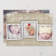 Uma colagem de três fotos aparece na frente deste adorável e divertido design que incorpora um efeito de textura de burlap e borda branca festiva de flocos de neve através da borda superior e inferior da placa. Foto adicional grande na parte de trás. A tipografia química em branco deseja família e amigos um Feliz Natal de sua família para os seus.