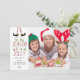 Cartão com fotos de Natal bonito e caprichoso com as boas-vindas TIS THE SEASON PARA SER JOLLY numa tipografia moderna, escrita à mão, com chapéus, calçados e pernas de elfo de Natal. ASSISTÊNCIA: Para obter ajuda com a modificação ou personalização do design, redimensionamento, transferência do design para outro produto ou se você quiser coordenar itens, entre em contato com o designer ANTES DE PEDIR através da guia MENSAGEM de Bate-papo Zazzle abaixo ou envie um email para makeitaboutyoustore@gmail.com.
