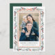Compartilhe desejos calorosos com este cartão com fotos de feriado cômico com um arco de fita vermelho-aquática e um verde-inverno que enquadra sua foto favorita da família. A design moderna, porém elegante, inclui sotaques sutis de bagas sagradas e estilos de sentimento de "Feliz Natal", com espaço atrás para uma segunda foto e mensagem personalizada. Uma forma festiva e eterno de mostrar fotos da família enquanto destaca a fita vermelha e os detalhes do arco que seus destinatários irão adorar.