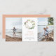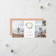 Corante aquoso russo, cor branca, coroa floral, coroa, coroa de Natal. Recursos, Feliz Natal na caligrafia empoeirada de assinatura de pêssego, duas fotos verticais na frente, 3 linhas para sua mensagem, nome e ano com coordenação de cor sólida de pêssego