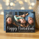 Cartão com fotos elegante e festivo de Chanucá apresenta "Feliz Chanucá" em estilo manuscrito na tipografia casual de roteiro branco. Personalize com seu nome de família e o ano no final.