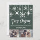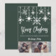 Uma moderna neve branca e flocos de neve pendurados em fotos brancas 2 família elegante carta de saudação de natal em verde.