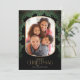 Este maravilhoso cartão de Natal mostra uma foto vertical dentro de um quadro arredondado, adornada com uma borda errada. O fundo é preto. O backside oferece texto personalizado para você adicionar sua própria mensagem pessoal ou usar a mensagem mostrada.