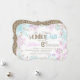 Pastel e cinzas prateadas e flocos de neve com aspecto de folha de alumínio sobre fundo branco maravilha de inverno design de 6 anos de convite para o aniversário.